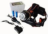 This Rechargeable LED Headlamp's powerful beam can illuminate a distance of over 1/3 of a mile. It includes two rechargeable batteries and AC charger, all conveniently packed in a plastic storage case. The head of the lamp angles up and down incrementally 90 degrees, while the beam zooms in and out by rotating the head of the lamp from side to side. While the lamp is on, a red LED caution light on the back of the headband burns steadily or flashes to warn others of one's presence in the dark, providing awareness.